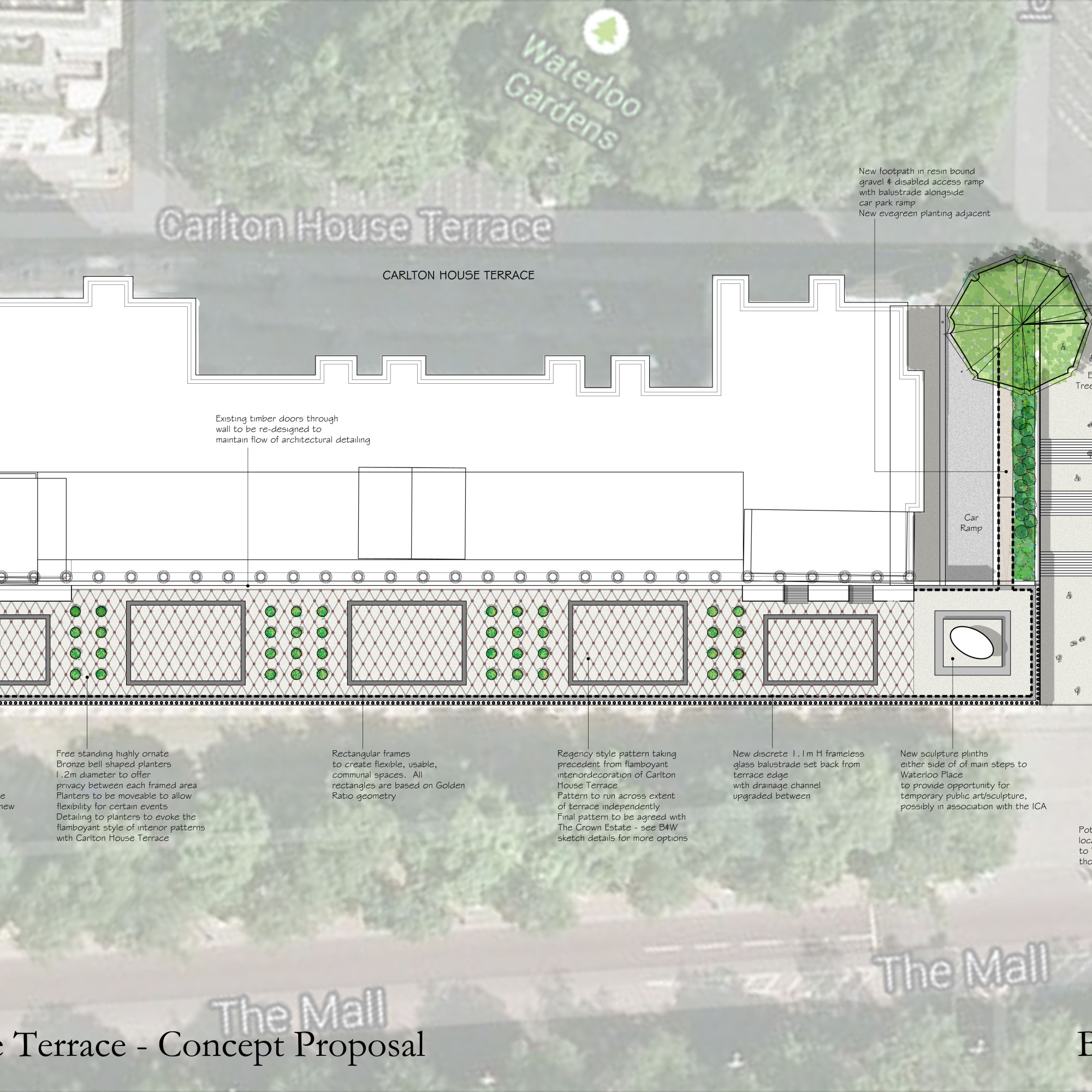 A competition to design improvements to the historic terrace overlooking The Mall.